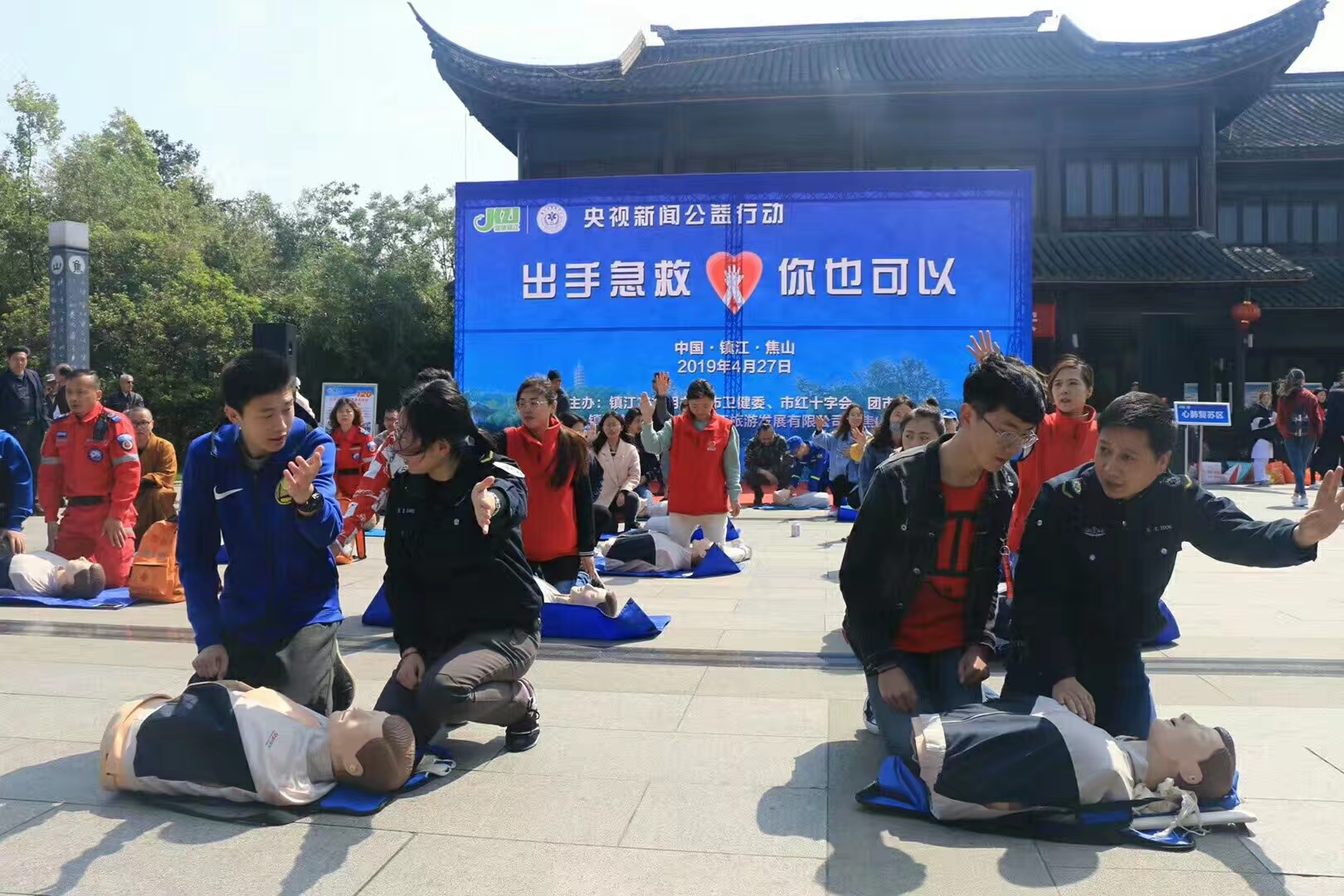 4月27日上午,镇江市急救中心、市红十字会、镇江市文明办、市卫健委、团市委在焦山游客服务中心广场开展了“出手急救,你也可以”急救知识宣传活动,并邀请广大游客参与心肺急救体验式教学。材料学院蒲公英义工站、理学院春晖义工站的志愿者们参与了此次活动。