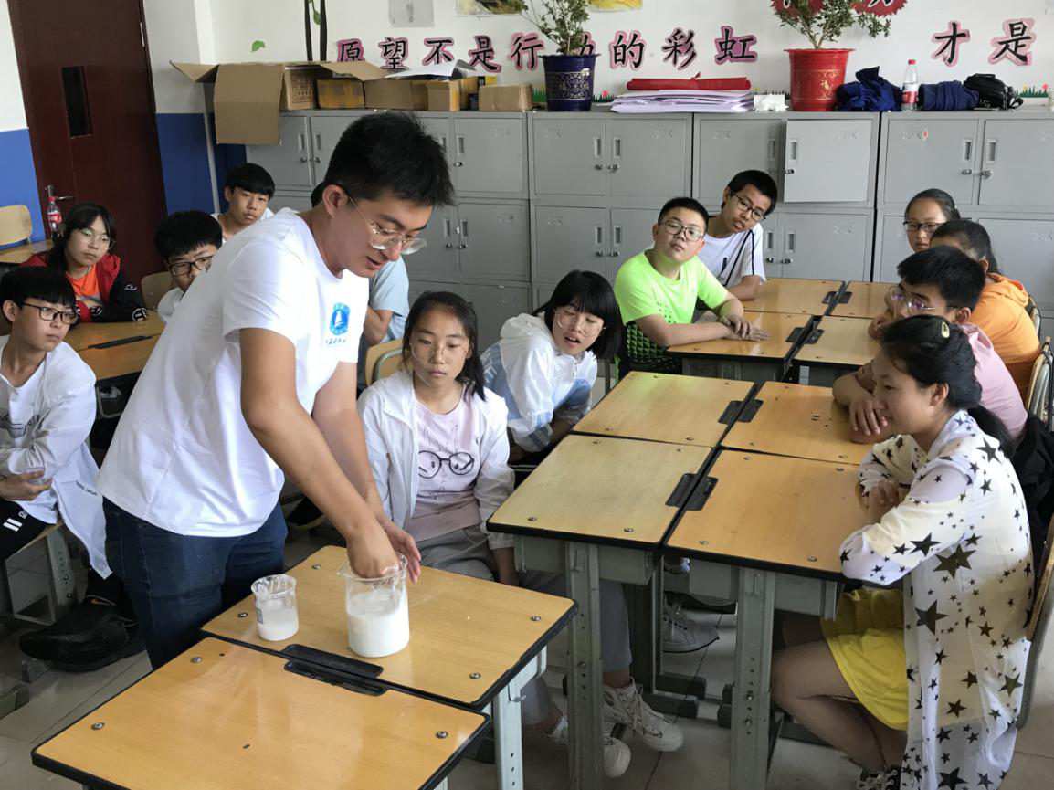 7月13日,萃英学校校长董文超出席了开营仪式,李文达就“梦想”联系介绍大学的生活展开了第一节扶志课,三位实践团成员也分别以实现理想过程中的“转折”、“烦恼”、“蜕变”为主题,结合自己成长的经历,向学生传递出正能量,帮助他们解决成长中的困扰。在听故事的过程中,很多同学感同身受,大胆说出自己的想法,寻找到属于自己的信念。