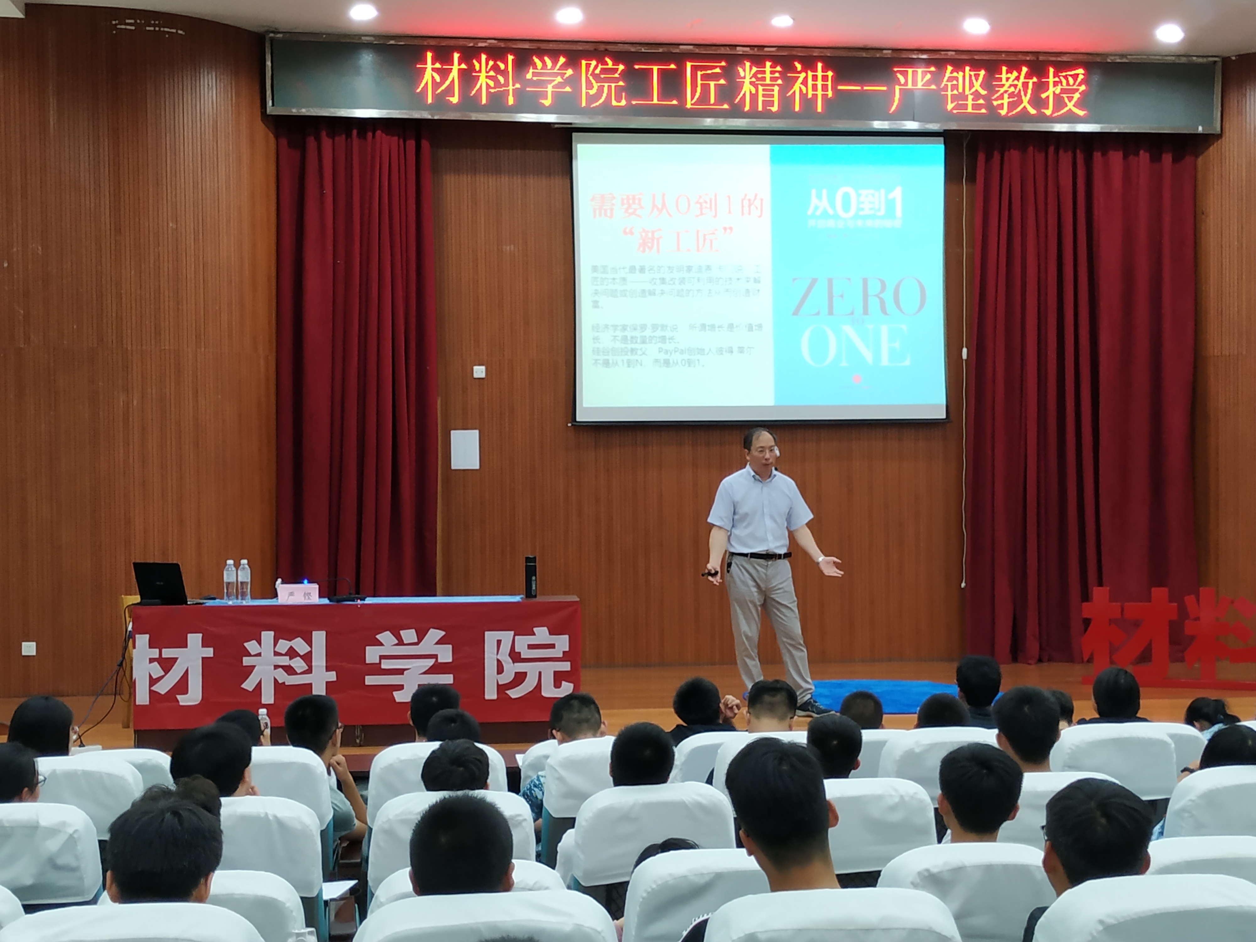 9月12日,材料学院在西校区图书馆报告厅举办新生开学第一讲——“工匠精神”主题讲座,邀请著名专家严铿教授主讲,学院所有大一新生参加。