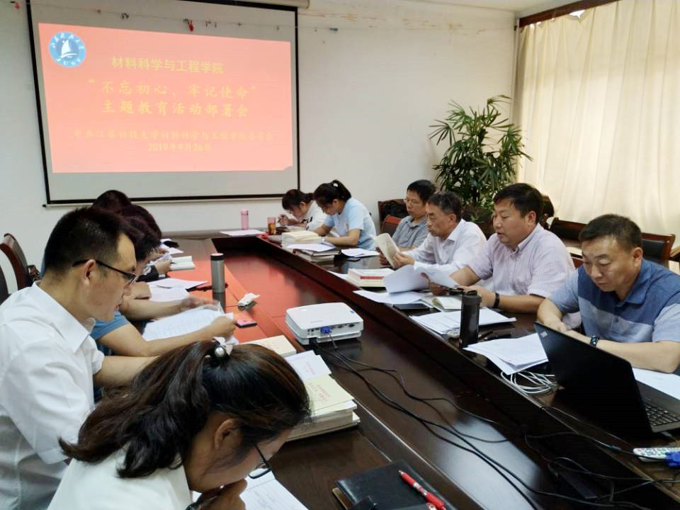 9月26日下午,材料学院党委中心组召开“不忘初心、牢记使命”主题教育动员部署会,认真学习贯彻习近平总书记重要讲话和“不忘初心、牢记使命”主题教育工作会议精神,全面落实学校党委关于主题教育的责任要求,对全院开展主题教育进行动员部署。学院全体党委委员,党支部书记参加集中学习。会议由学院党委书记祁凯主持会议。