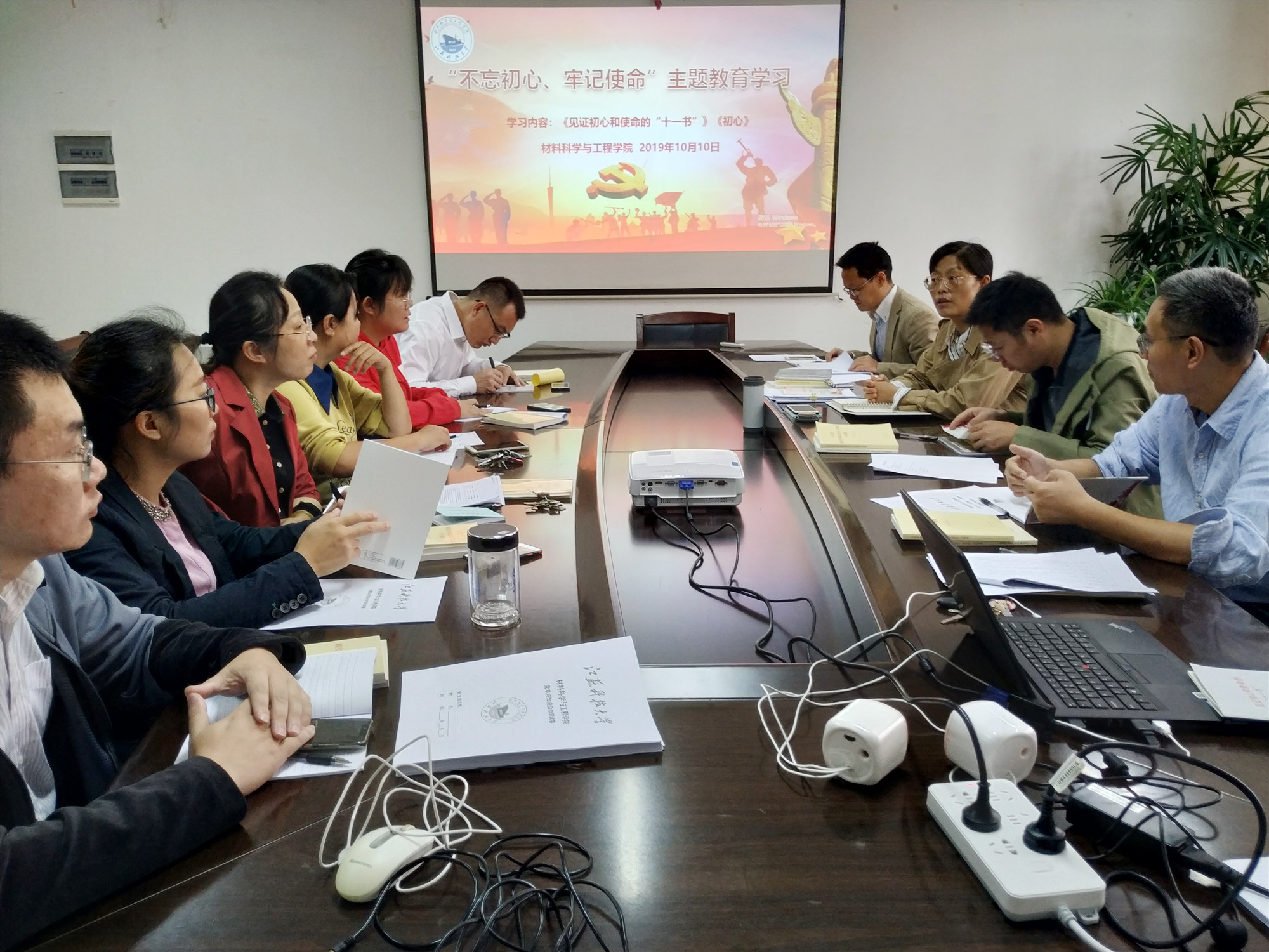 10月10日,材料学院党委开展“重温入党初心,践行初心使命”——“不忘初心、牢记使命”主题教育。材料学院党委副书记赵莉、副院长晏超和各支部书记参加。学习活动由赵莉主持。雷锋领学。