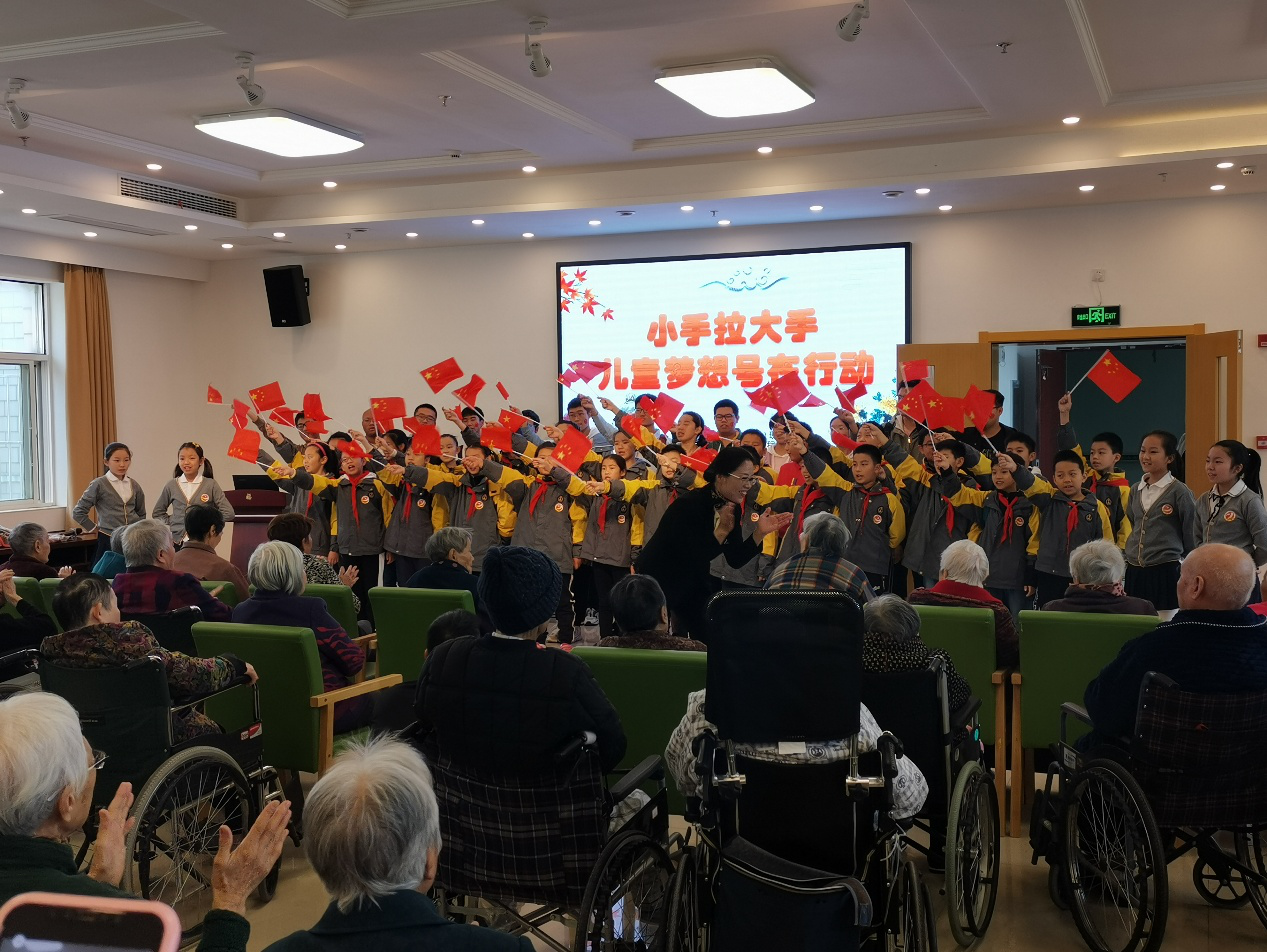 为关心关爱老人,在实践中锻炼自己,11月9日,材料学院关爱中心项目组及文艺部、学习部部分成员携手红旗小学五年级56班的小朋友们,在九久老年康复中心开展了“小手拉大手”慰老活动。