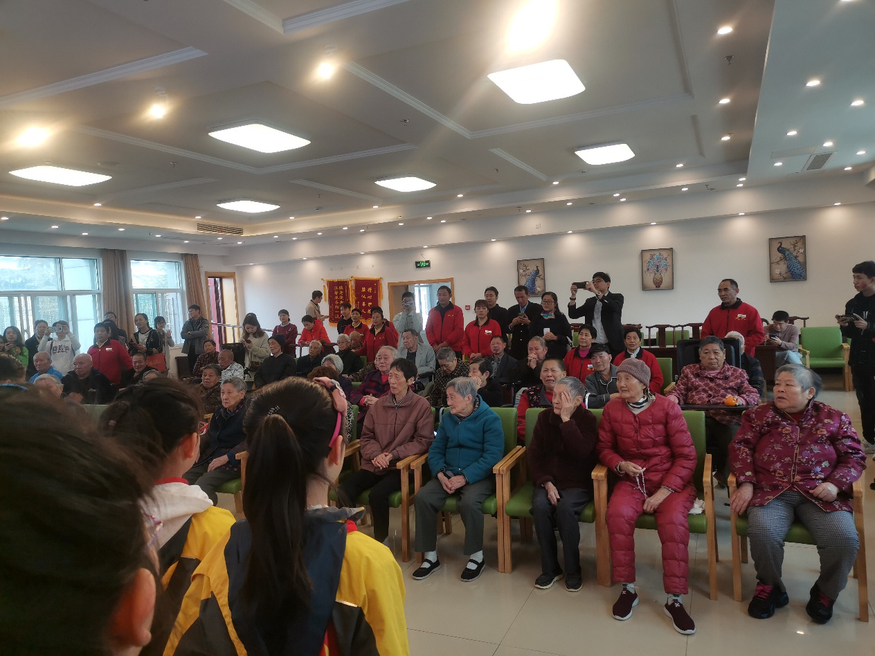 在活动正式开始之前,九久康健中心副院长为同学们介绍了大厅的布置极其寓意,带领同学们依次参观各个楼层,了解老人们的生活环境和状况。活动在多功能厅正式开始,首先由关爱中心的同学们同红旗小学的小朋友们带来大合唱《我和我的祖国》以及《红星闪闪》,接着是小朋友们依次表演吉他弹唱,舞蹈,魔方还原,再由大学生志愿者合唱《虫儿飞》及《感恩的心》等节目,最后由三个部门的代表王可欣,成功,王俊迪,俞丁四位同学演讲《青春中国》结束今天的活动。