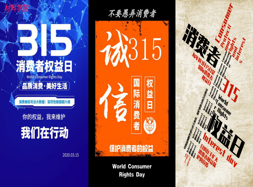 自3月9日起,材料学院权益部举行了为期一周的3.15权益日线上系列活动。活动分为海报征集,知识问答,集赞转发三个小活动展开。