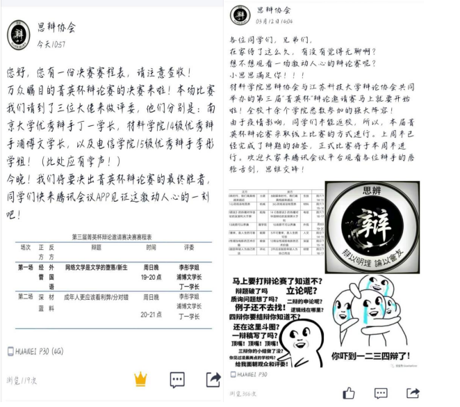 4月12日,由江苏科技大学材料学院思辩协会与江苏科技大学辩论协会联合举办的第三届“菁英杯”辩论邀请赛圆满落下帷幕。