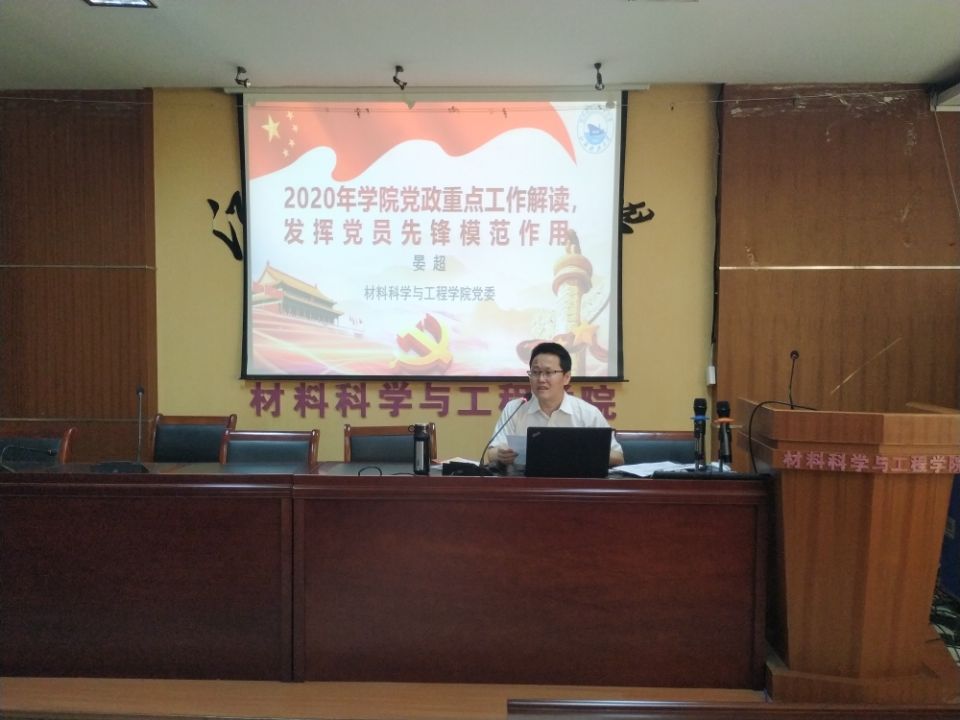 在主题党课上,学院党委书记晏超做了题为《2020年学院党政重点工作解读,发挥党员先锋模范作用》的专题党课。他带头学习了学校第三次党代会精神,更加明确学校两个阶段奋斗目标的内容。并从党建和思想政治工作、教学工作、人才和人事工作、学科建设和研究生培养工作、科研和社会服务工作、学生工作、条件建设和管理工作等方面,做了详细深入的解读,强调了加强学习强国学习的重要性。