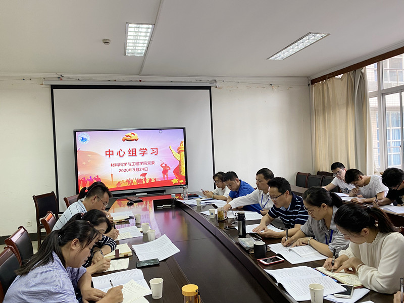 9月24日下午,材料学院党委理论学习中心组召开学习会,集中学习葛世伦书记《新校区 新梦想 新作为 新业绩 奋力推进进位争先实现学校高质量发展》等重要讲话精神。学院党委理论学习中心组成员、支部书记参加。学院党委书记晏超主持学习。