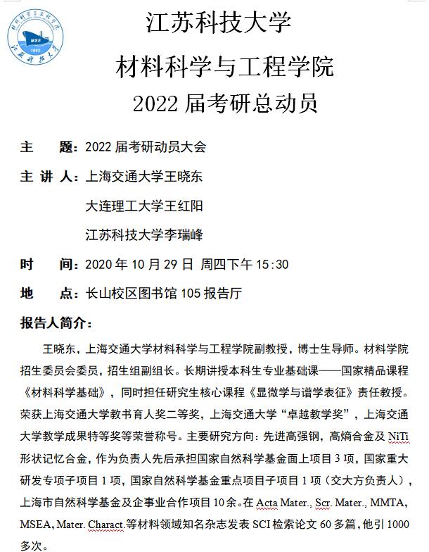 讲座预告|beat365正版唯一官网2022届考研动员大会