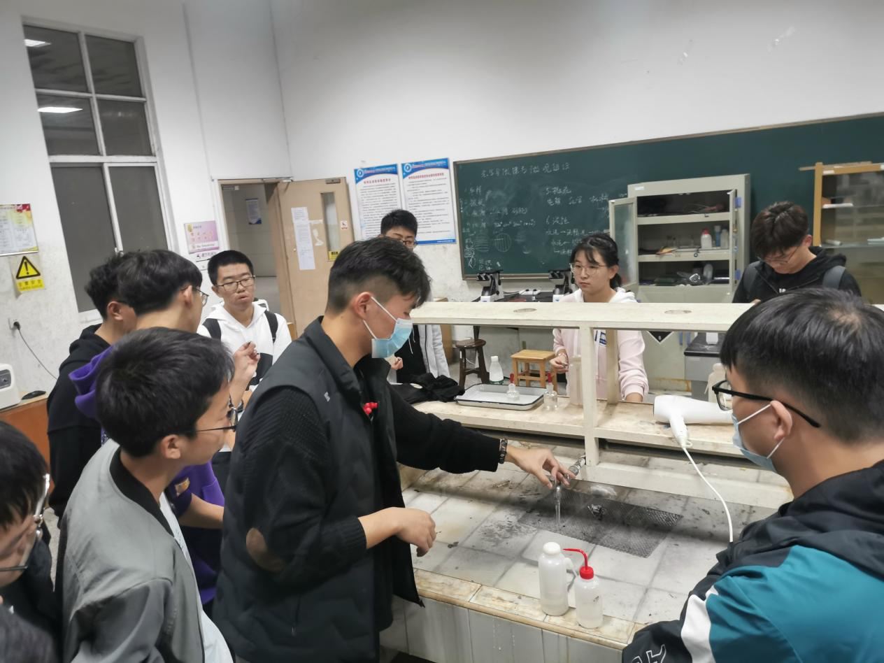 金相磨制分为打磨、抛光、腐蚀和观察四个步骤。了解相关流程以后,同学们开始动手打磨。在场的工作人员协助并指导同学们,指出存在的问题,给出解决办法,同时认真确保同学们的安全。在抛光时尤其要注意手腕用力以及试样表面温度,避免金相溅飞出去。李世平同学为大家指导试样抛光,确保大家安全规范的操作。抛光结束后就是金相试样的腐蚀。金相腐蚀主要是:酒精清洗-水清洗-3%硝酸腐蚀这几个步骤。在李世平同学的指导下同学们很快的完成了腐蚀操作。最后就是激动人心的显微镜下观察制备好的金相。同学们依次在显微镜下观察到了金相的相貌,领略金相的魅力。