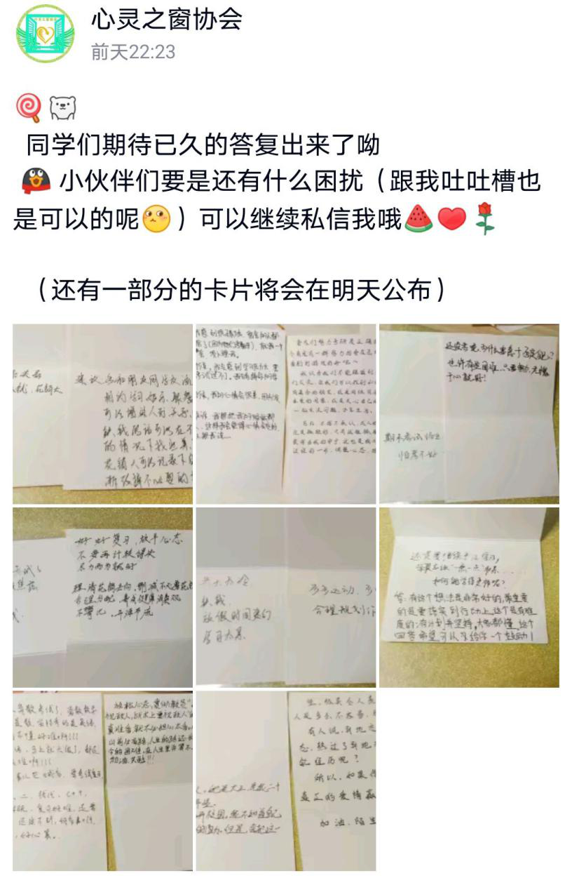 丰富活动形式,提升工作特色。“心灵解忧小铺”活动在长山校区西食堂门口成功举办,得到了同学们的热烈响应。此次活动由“让我们烦恼的小事儿”和“你的烦恼我理解”两个板块构成,采用线下与线上融合进行的形式,增加了活动的参与面和活动宣传效果。现场参与活动的同学可选择匿名在心灵小卡片上书写自己生活中的烦恼或随机抽取心灵小卡片为其他同学的困惑解忧,并封存于小铺专属心灵信封内,待后续“邮寄”至心灵小铺公众号,同学们在公众号里不仅能看到自己困惑的解答,也能留言为他人解忧。这次活动不仅为同学们提供了一个互相倾诉,相互解忧的平台,更是严寒冬日里的一份温暖,扫掉同学们内心的阴霾,让同学们一起感受美好的心灵之语。