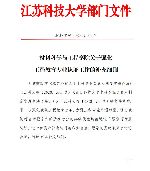 beat365正版唯一官网关于强化工程教育专业认证工作的补充细则