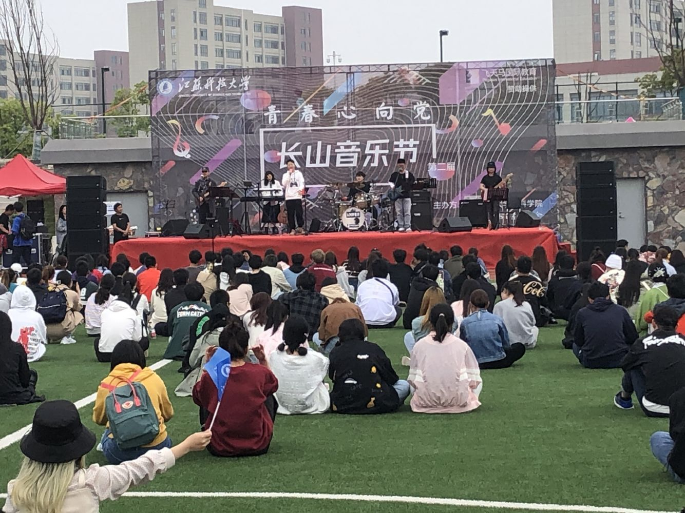 本次音乐节开幕仪式在长山校区足球场隆重举行,在主持人的简单介绍后,由NAMELESS乐队带来的歌曲《我爱你中国》开场,激昂的歌声、熟悉的旋律当即与大家形成了情感的共鸣。在大家的高声欢呼下,“STR8”乐队也随之闪亮登场,主唱率性洒脱的演唱与吉他手、键盘手和鼓手的精彩演奏完美结合,两首歌歌罢已完全征服了全场的观众,博得了一阵惊呼。随后,“Oho”乐队、“TIA街舞社”、“JUSTNEWBEAT”潮音协会、“KDS曳步舞协会”、“THNE-6”、“THE Hitmen”、“the whos”轮番上阵,掀起一股又一股的摇滚热潮。据悉,此次音乐节还有江科大十佳歌手中的申澳、刘孝天和李芷鋆惊喜登场。在建党100周年之际,节目中间的互动环节,穿插了歌手们与主持人带来的党史知识问答,每一次问答的互动都让场上的气氛变得异常热烈。