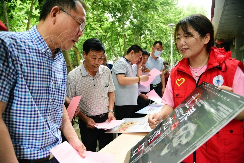 活动伊始,为了营造良好的宣传氛围,志愿者们合理摆放好宣传面板,并将正面粘贴过禁烟标识的口罩发放给活动成员。随后,由志愿者登台开始进行关于“承诺戒烟,共享无烟环境”的主题宣讲,向大家讲述吸烟的危害并呼吁大家共同构建和谐健康的生活环境。宣讲结束,大家也都快速进入了状态,每个成员也都在自己的岗位上奋力宣传。志愿者们向来往路人和社区成员绘声绘色地讲解了禁烟小知识,提供戒烟小建议。场面一度非常活跃,宣传效果良好。