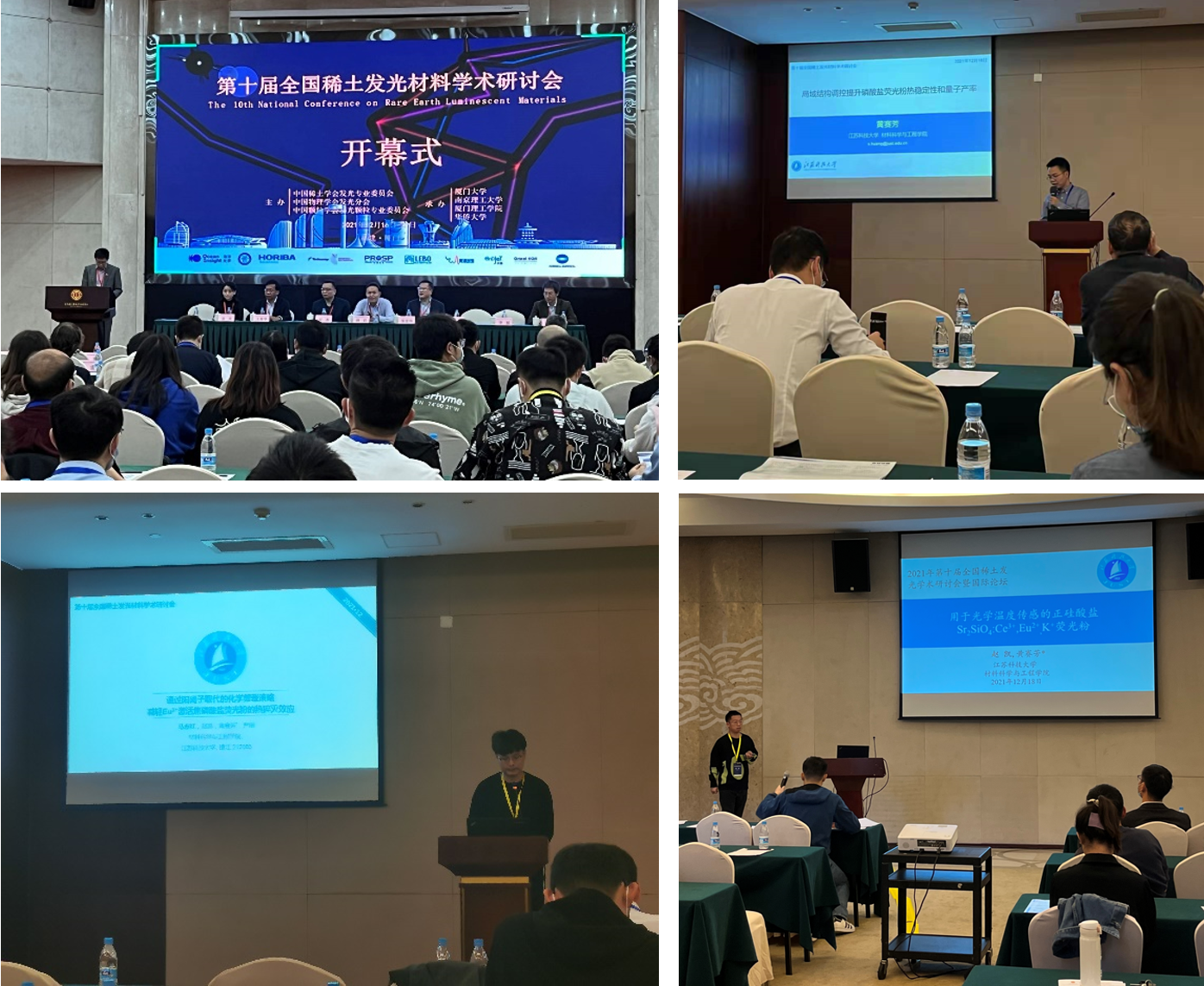本次会议涵盖稀土发光材料的基础与理论、稀土发光材料的设计、合成与表征、固态照明发光材料与器件、先进显示发光材料与器件、近红外发光材料与应用、上转换发光材料与应用、长余辉发光材料与应用、高能射线激发发光材料与应用、应力发光材料与应用以及其他发光材料与应用等十大议题。在固态照明发光材料分会场作了“局域结构调控提升磷酸盐荧光粉热稳定性和量子产率”特邀报告,介绍了具有优异量子效率和抗热猝灭的Eu2+激活磷酸盐蓝光荧光粉的实现途径和构效关系,相关研究可助力高功率LED器件和激光照明的发展。硕士研究生马志红和赵凯也分别作了口头报告“通过阳离子取代的化学剪裁策略减轻Eu2+激活焦磷酸盐荧光粉的热猝灭效应”和“用于光学温度传感的Sr2SiO4:Ce3+,Eu2+,K+正硅酸盐荧光粉”。