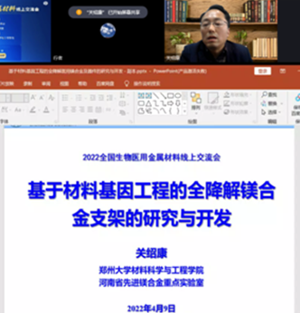 2022年4月9日至10日,由中冶有色技术平台、中冶有色技术网主办,beat365正版唯一官网协办的“2022 全国生物医用金属材料线上交流会”成功举行。中国生物材料学会医用金属材料分会第一届主任委员、中国科学院沈阳金属所杨柯研究员,郑州大学副校长关绍康教授、北京科技大学副校长王鲁宁教授,中国医用金属材料分会副主任委员、上海交通大学袁广银教授, 中国医用金属材料分会副主任委员、东北大学张二林教授, 江苏科技大学材料学院院长芦笙教授、中南大学余琨教授、山东科技大学曾荣昌教授、北京工业大学陈继民教授、南方科技大学任富增研究员、西北有色金属研究院余森教授、中国科学院宁波材料所杨丽景研究员、天津理工大学刘德宝教授、中国科学院金属所谭丽丽研究员、哈尔滨工业大学王亚明教授等全国生物医用金属材料领域的知名专家学者应邀出席会议并做大会报告,来自全国高校院所、医疗医学等机构的1000多名专家学者和学生参加了线上交流。杨柯研究员致开幕词,张二林教授、芦笙教授分别主持了大会。