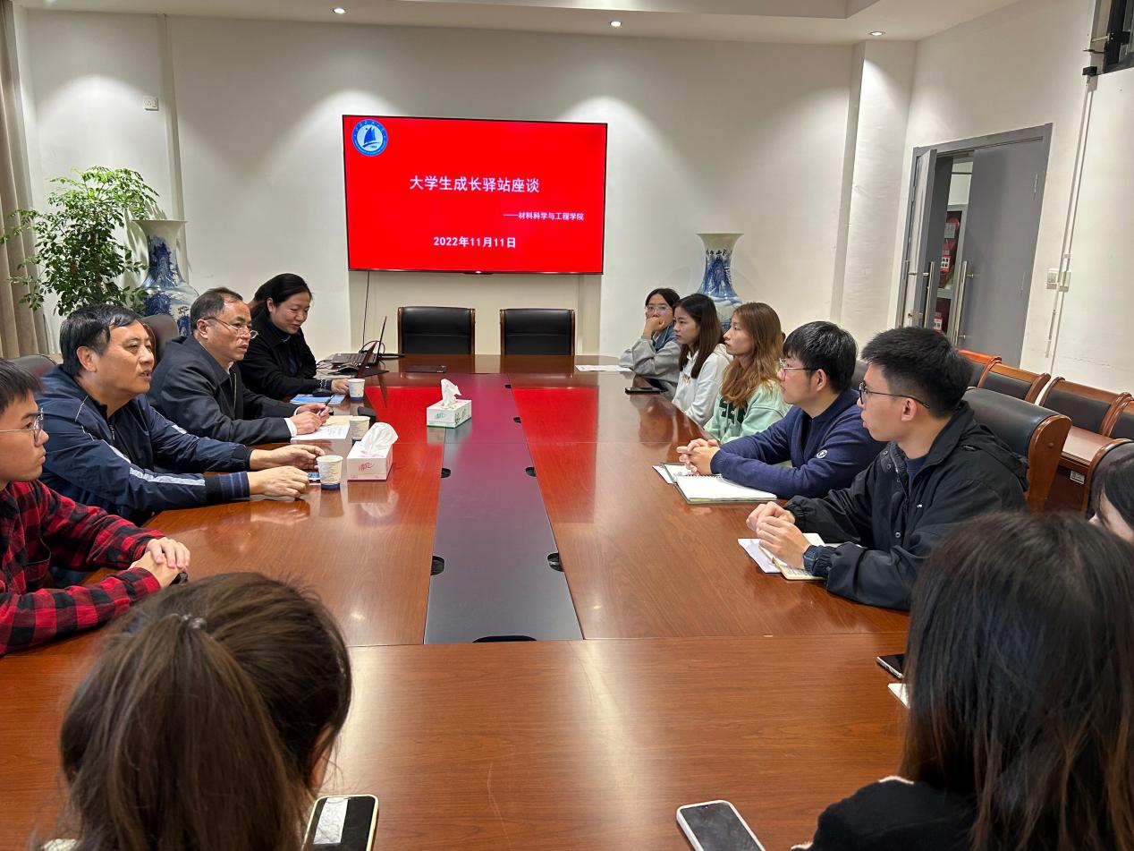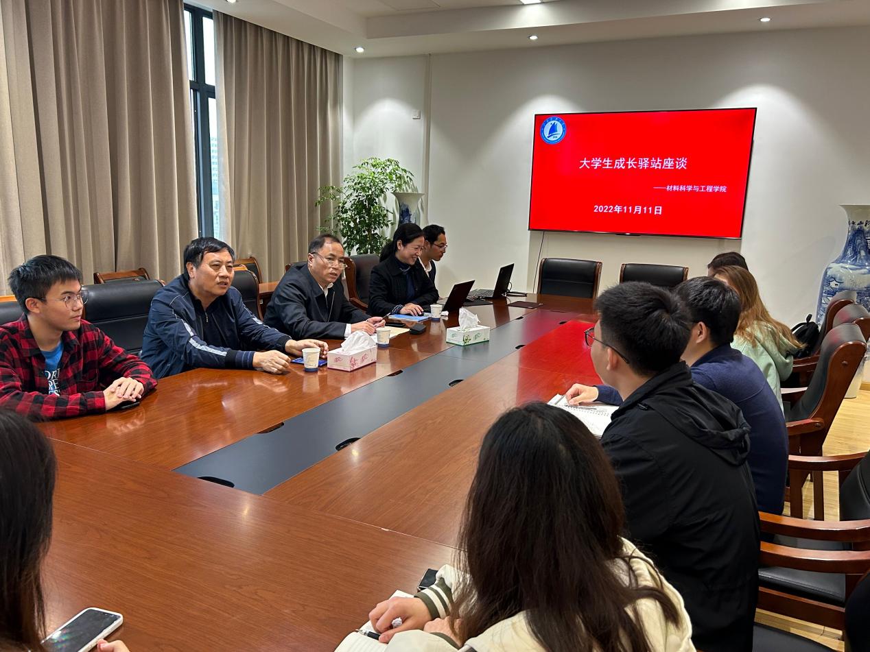 11月11日下午三点半,材料学院关工委于长山校区材料楼512会议室开展大学生成长驿站座谈会。校关工委委员潘宝俊、汪电明材料学院党委副书记杨海涛,团委副书记张正栋与研究生代表,团学组织代表参与本次座谈会,会议由材料学院党委副书记杨海涛主持。