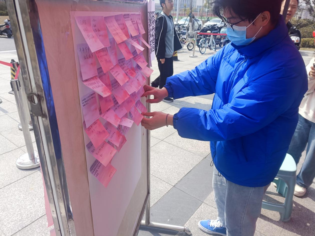 学雷锋精神,悟感恩初心。2023年3月5日适逢第60个学雷锋纪念日,蒲公英义工站在江苏科技大学长山校区东苑食堂门口开展以“学雷锋精神,悟感恩初心”活动。参与者们通过蒲公英义工站的小蒲公英们精心准备的精美便签纸,写下自己对雷锋精神的理解及个人的所思所感,并以展板形式进行宣传,让更多的人感受到雷锋精神的可贵,激发广大学生发扬雷锋精神,用实际行动回报社会、回报国家。