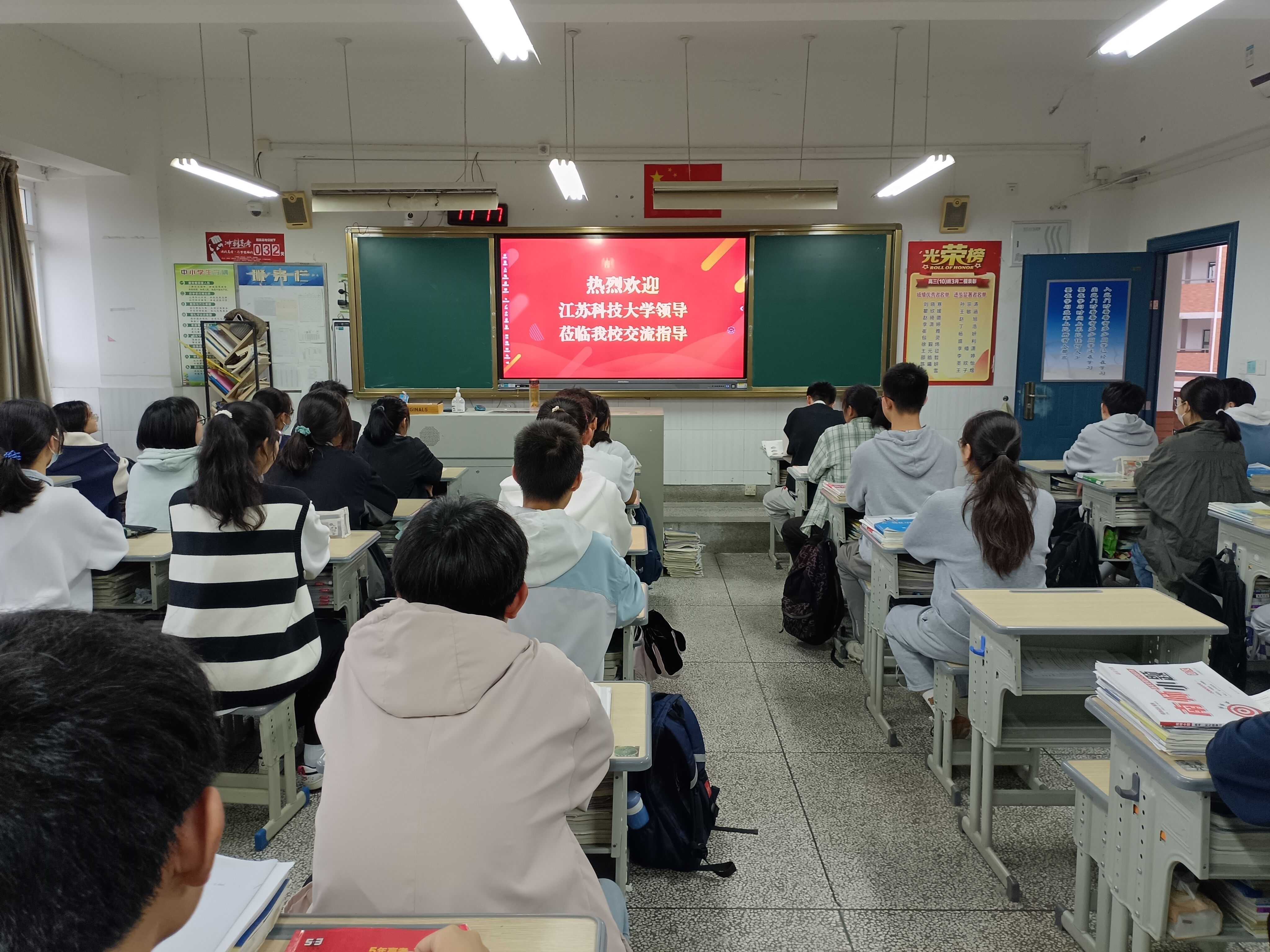 回访交流会上,招生小组重点介绍了学校历史沿革、特色优势专业、人才培养特色、毕业去向等基本情况以及学院建设发展概况,感谢生源基地近年来不断为我校输送优质生源。在回访涟水中学期间,我院22级研究生陶致远的妹妹陶子涵同学给予了我们热情的帮助,其目前就读于涟水中学高一(19)班,表示要向哥哥学习,以考取江苏科技大学为自己奋斗目标。