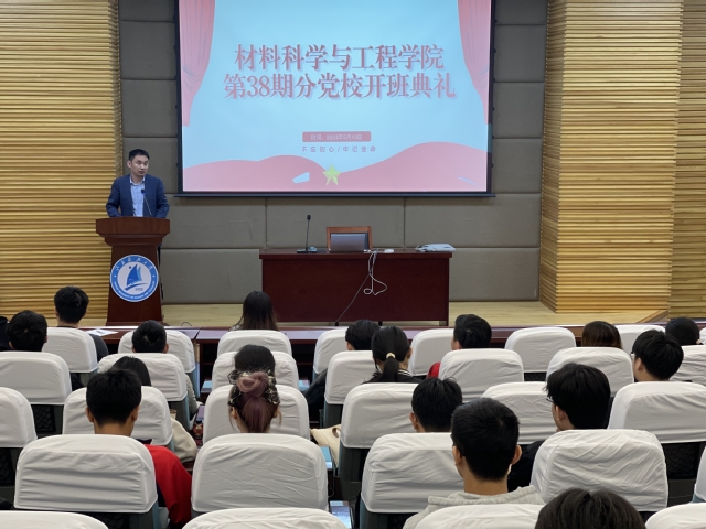 为深入学习贯彻党的二十大精神和习近平新时代中国特色社会主义思想,做好新时代党员发展工作,5月10日下午,材料学院举行第38期分党校培训开班仪式。学院党委书记、分党校校长李瑞峰,学院党委副书记、分党校副校长杨海涛以及65名入党积极分子参加了开班仪式。