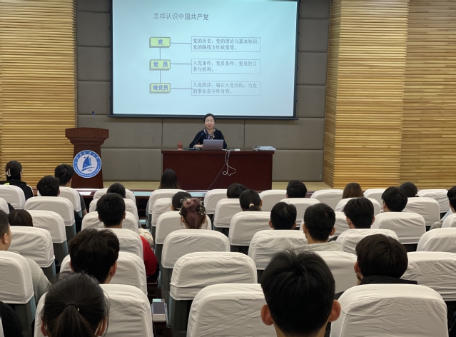 开班仪式结束后,学院党委副书记杨海涛为全体学员讲授“中国共产党党员条件、义务和权利”专题党课。她从申请入党要满足的条件、党员的三个基本条件、党员的八项义务和八项权利等方面开展讲解,希望与会学员以一名党员的标准在政治、思想、学习以及生活等各方面严格要求自己,接受党组织的考验,以实际行动不断向党组织靠拢。