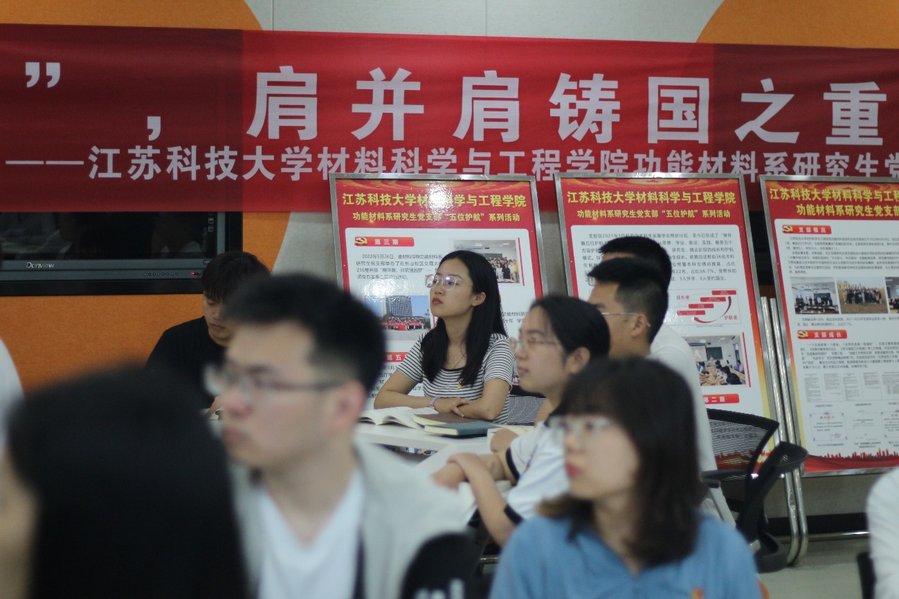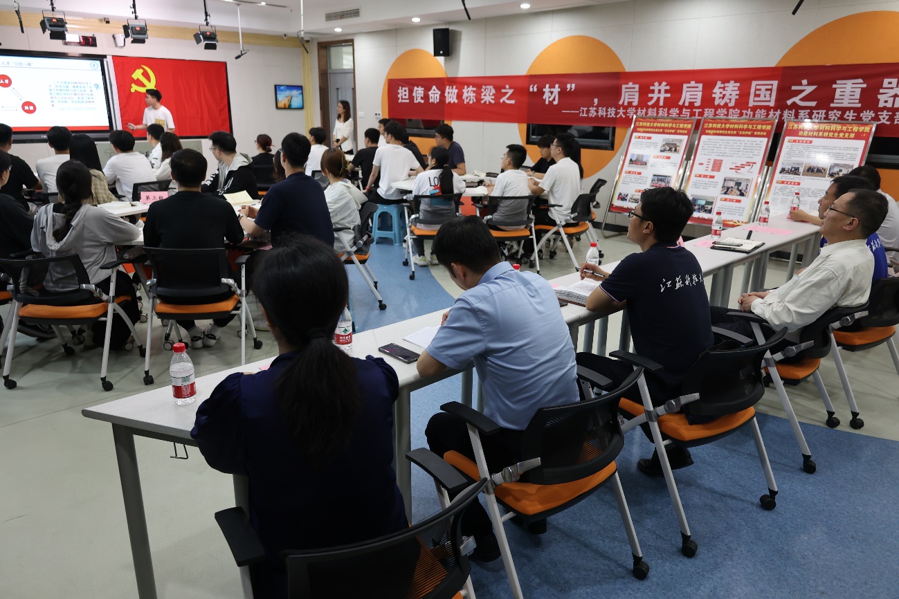 为深入开展学习贯彻习近平新时代中国特色社会主义思想主题教育,响应“学思想、强党性、重实践、建新功”的总要求,通过读原著、学原文、悟原理汲取奋发进取的智慧和力量,5月29日下午材料学院功能材料系研究生党支部在文理大楼108智慧教室开展“担使命做栋梁之‘材’,肩并肩铸国之重器”为主题的集中理论学习。学校党委常委、副书记汤建旁听了支部理论学习,机关党委书记、组织部副部长祁凯,宣传部副部长张强,材料学院党委书记李瑞峰、副书记杨海涛,支部全体党员参加。