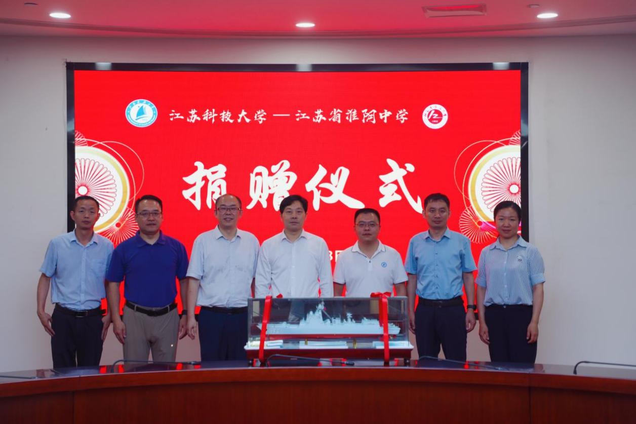 在“江苏省高品质示范高中”淮阴中学,副校长陈凯对胡校长一行的到来给予了热情接待,双方就学生培养、专业建设等展开深入交流,提出要加强校际交流,共同探讨教育教学模式与规律,希望我校专家、学者常来中学开讲座,开阔学生视野,培养学习兴趣,明确专业方向,促进学生全面发展。我校向淮阴中学赠送了“172号”导弹驱逐舰船模一套,并对淮阴中学在此次高考中取得的喜人成绩表示祝贺。