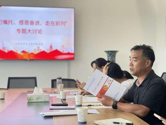 根据学校主题教育计划安排,6月29日材料学院以“牢记嘱托、感恩奋进、走在前列”为主题开展专题大讨论。学院党委理论学习中心组成员、党支部书记参加交流研讨,会议由学院党委书记李瑞峰主持。