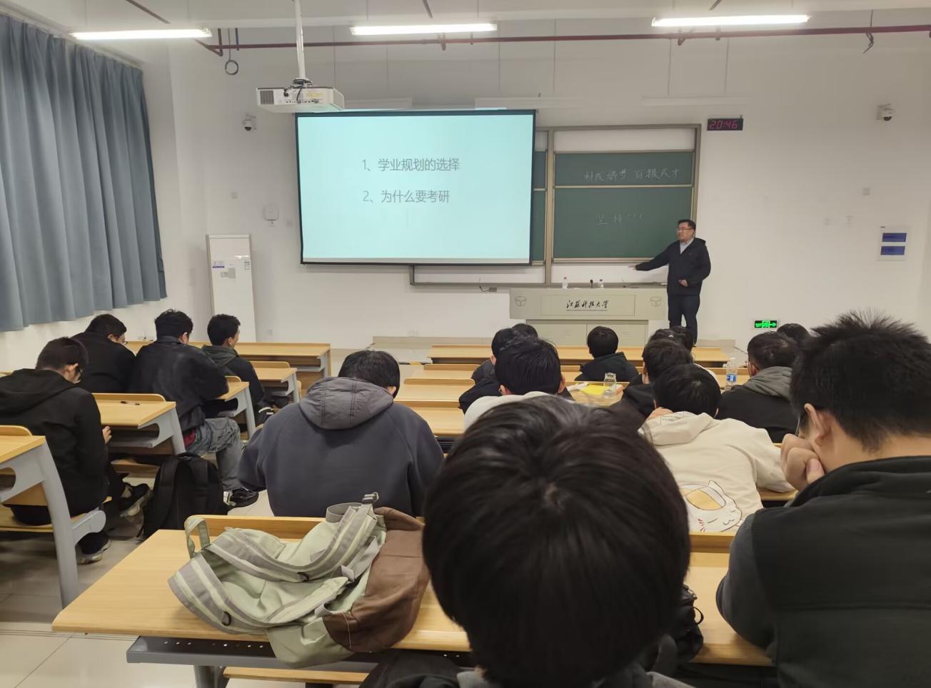 随后,臧千昊老师则从学业规划的角度出发,结合自己的亲身经历,深入剖析了就业与考研的意义与价值。他详细阐述了为何选择考研、考研科目的细分情况,以及各科目的分数预估与备考策略。臧老师的分享不仅让同学们对考研有了更全面的认识,也激发了他们进一步深造的热情和信心。