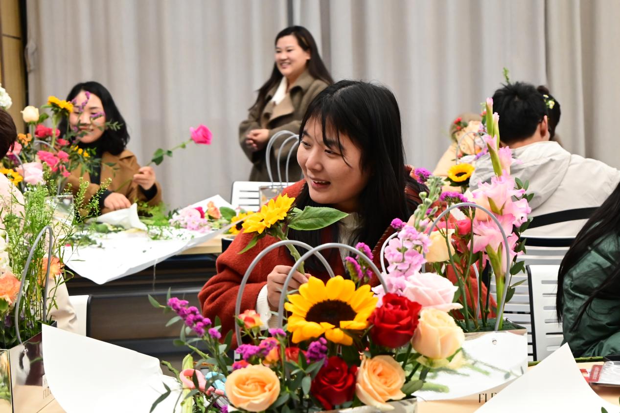 在动手制作插花作品的过程中,师生们不仅展现了各自独特的艺术视角和审美情趣,还通过交流分享,增进了彼此的了解和友谊。许多老师表示,这样的活动让她们在忙碌的教学和科研工作中找到了片刻的宁静与放松,而学生们则通过这样的实践学习,感受到了艺术与生活的紧密联系。