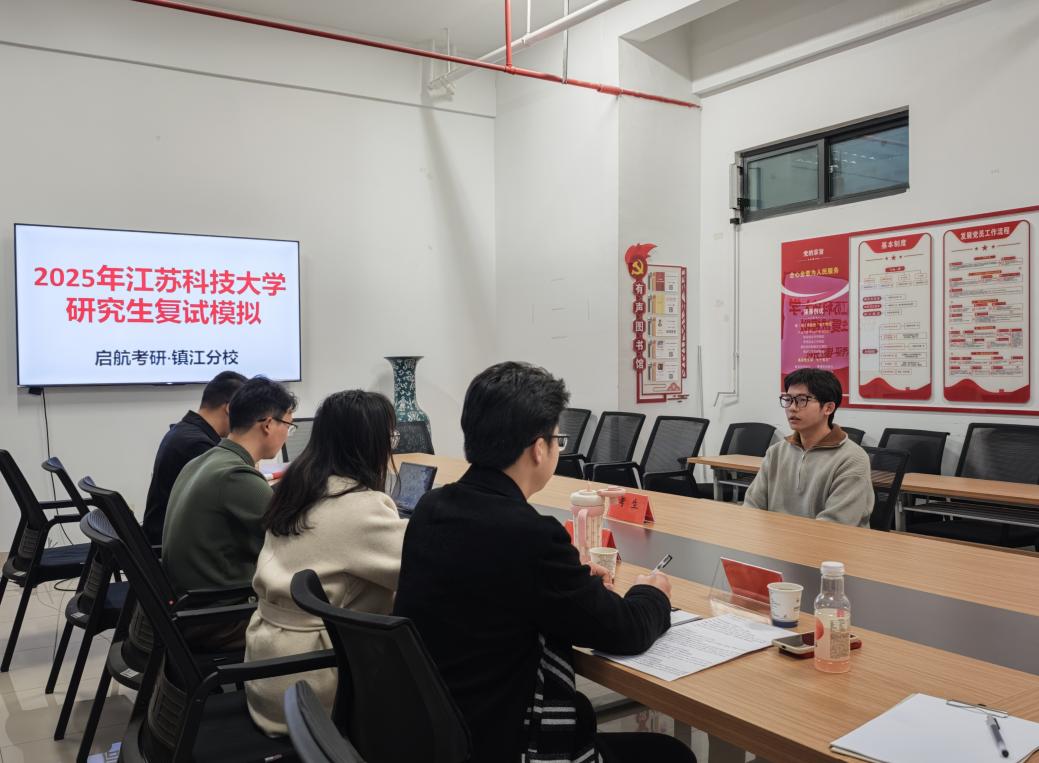 本次模拟活动参照高校一般的复试要求,分为英语口语测试、专业课面试、综合面试三个环节。启航考研辅导老师担任模拟面试官,对每位参与学生进行全方位的考查和点评。模拟过程中,学生首先进行英语自我介绍并进行英语随机问答, 接着面试官们围绕学生的专业背景、科研经历、未来规划等方面展开了深入提问。最后面试官们从面试礼仪、语言表达和逻辑思维能力等维度对学生的表现进行细致点评,指出了他们的优点和不足,并给出了针对性的改进建议。参与学生普遍反映, 本次模拟面试活动收获颇丰。通过身临其境地模拟体验,他们不仅熟悉了考研复试的流程和氛围,掌握了面试技巧,还更清晰地认识到自身存在的问题,明确了改进方向。