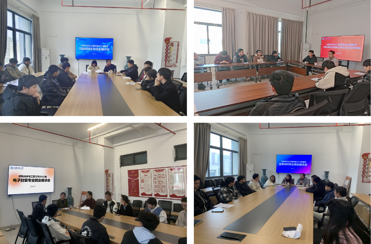 为深入贯彻毕业生就业服务工作,材料学院于3月5日至18日举办了2025届毕业生春季就业座谈会,覆盖了焊接技术与工程、金属材料过工程、高分子材料与工程、材料成型及控制工程、电子封装技术、功能材料六大专业,旨在深入了解毕业生的就业需求与困惑,提供精准指导和帮助。