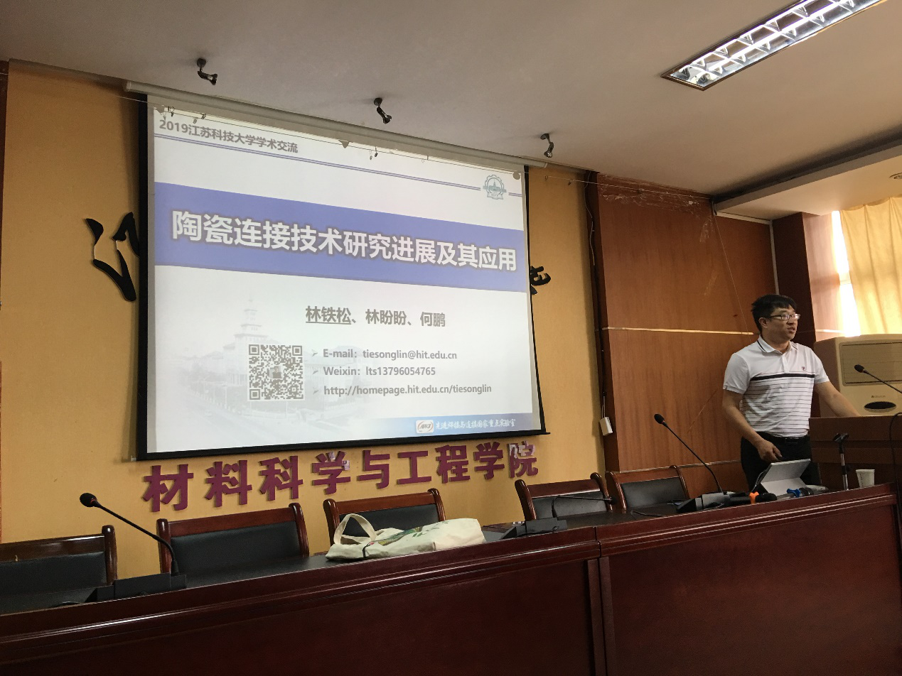 讲座中,林教授向师生们详细介绍他们课题组在陶瓷连接方面的三个基础性课题:陶瓷与金属的钎料改性连接、陶瓷与陶瓷的低温焊接高温服役以及陶瓷的玻璃钎焊技术。在陶瓷与金属的钎料改性连接方面,通过制备新的钎料合金实现了接头界面与钎料内晶须的生长,从而提升了陶瓷与金属的连接强度。在陶瓷与陶瓷的低温焊接高温服役方面,通过采用锆合金实现了碳化锆高温陶瓷的低温连接,所产生的均质陶瓷接头从而用于高温服役。在陶瓷的玻璃钎焊技术方面,通过开发新型玻璃粉,实现了陶瓷与玻璃之间的连接。
